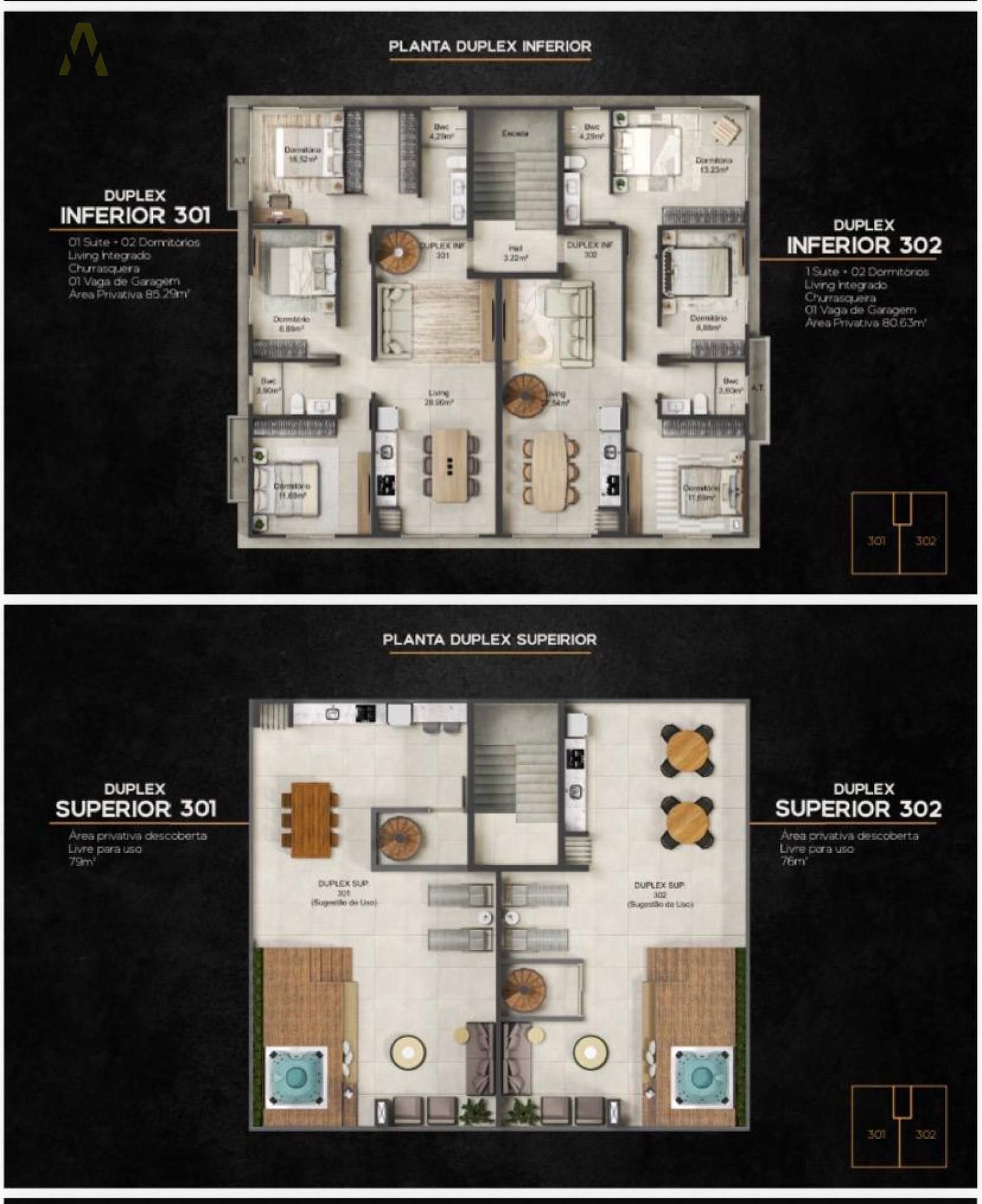 opção de duplex, com amplo espaço no pavimento